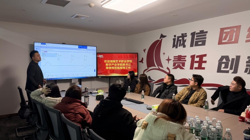 1月8日下午,数字产业学院党支部书记郭艺带队,组织学院教师代表马啸、黄赛、白莹及播音与主持、网络直播与运营等专业学生,走进马栏山兴旺数字科技园,先后走访长沙奥利历历文化科技有限公司、长沙八分文化传媒有限公司、湖南川泽渔具有限公司直播基地、湖南二年级传媒有限公司等多家企业,开展沉浸式走访调研与交流活动。
