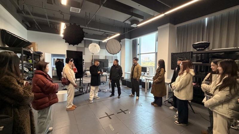走访过程中,师生深入参观了企业的办公环境、电商直播间、综艺制作空间及XR直播等真实业务场景,直观了解行业一线的工作形态与技术应用情况。围绕直播内容生产、运营模式、技术支撑以及岗位能力要求等方面,师生与企业团队进行了深入交流,重点探讨了行业发展趋势与专业教学、学生实践能力培养之间的衔接路径。